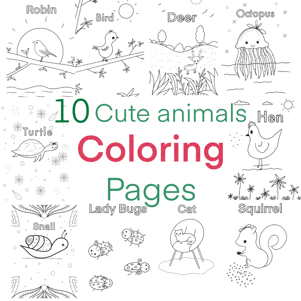 Cute Animal Coloring Book (contains 10 Printable Coloring Pages)