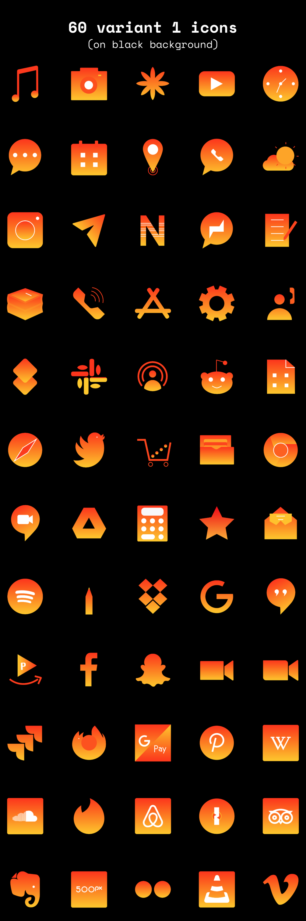 • 60 x PNG icons on the black background of both variant 1 & variant 2